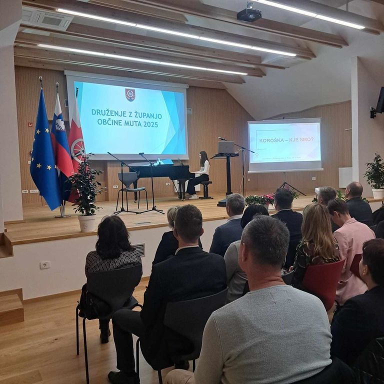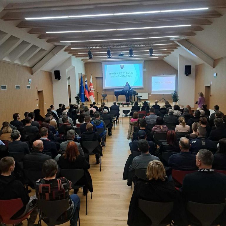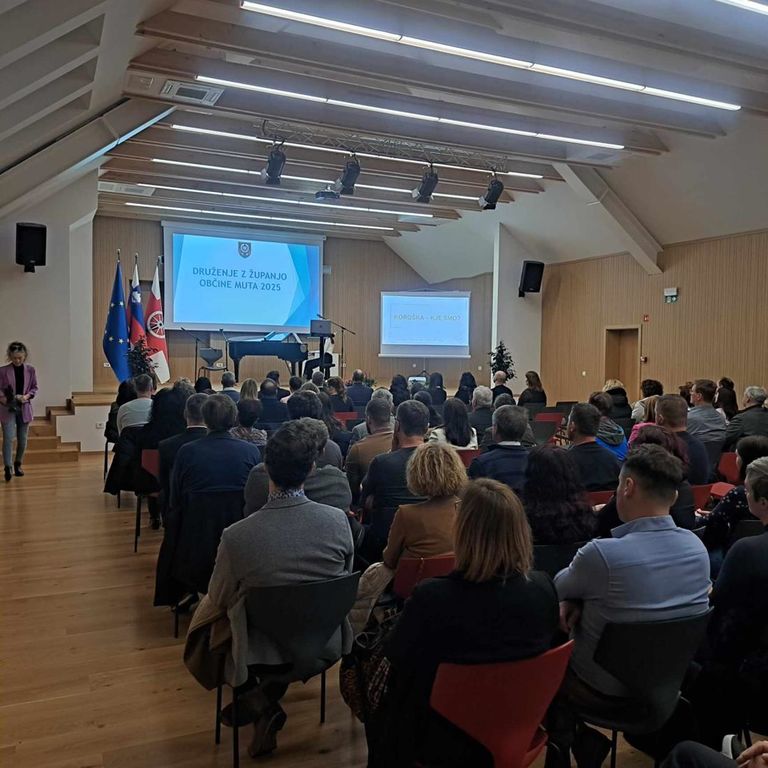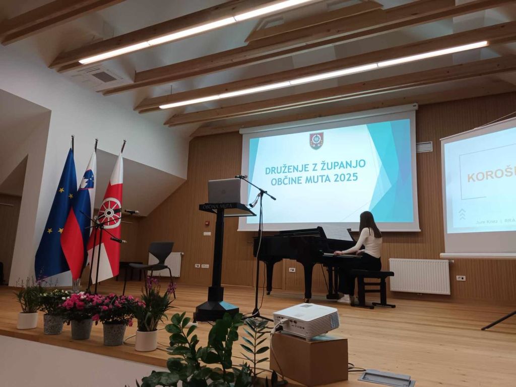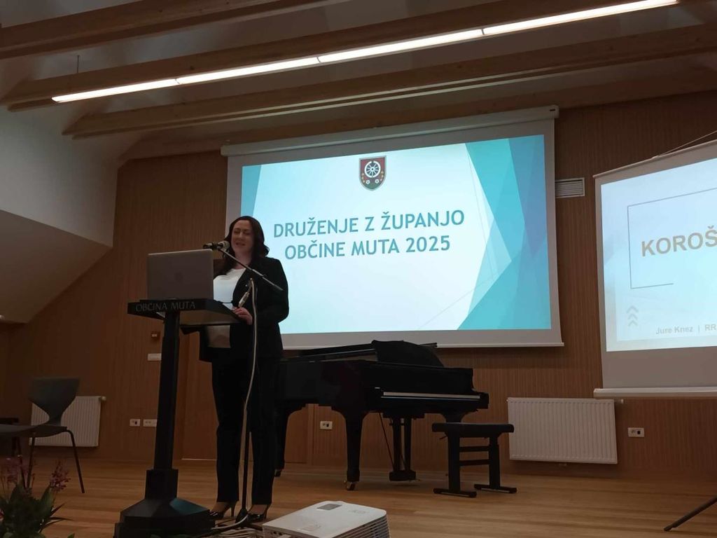 Tudi letos je županja Občine Muta, Angelca Mrak, priredila že tradicionalni sprejem ter druženje s predstavniki javnih zavodov, institucij in ustanov ter domačih podjetnikov. Srečanje je potekalo v večnamenski dvorani Kienhofen. Polna dvorana udeležencev priča, da je sodelovanje v občini veliko in dobro sprejeto. Srečanja so se udeležili tudi predstavniki Koroških občin ter poslanka Alenka Helbl. Osrednja govornica je bila županja Občine Muta, za kulturni program pa je poskrbela Zasebna glasbena šola Melodija Muta ter domači glasbenik Rudi Breznik. Iskrena zahvala g. Juretu Knezu, vodji MPIK, ki deluje v okviru RRA Koroška, za predstavitev »Zagon za vzpon«, ki je letošnje druženje naredila nekoliko barvitejše. Županja je v svojem nagovoru prisotnim predstavila razvojne projekte, poudarek pa je namenila novogradnji vrtca na Muti. Ob koncu je sledilo prijetno druženje v prijetni in sproščeni družbi.