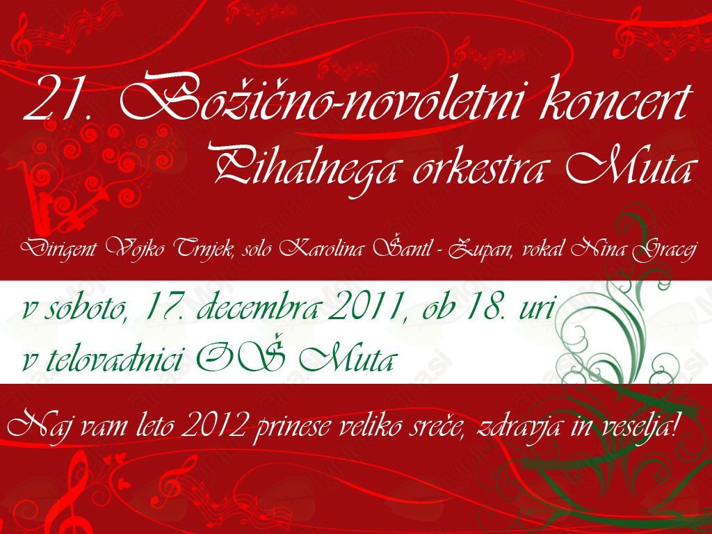 Vljudno vabljeni na božično-novoletni koncert pihalnega orkestra Muta, ki bo dne 17. 12. 2011 v telovadnici OŠ Muta.