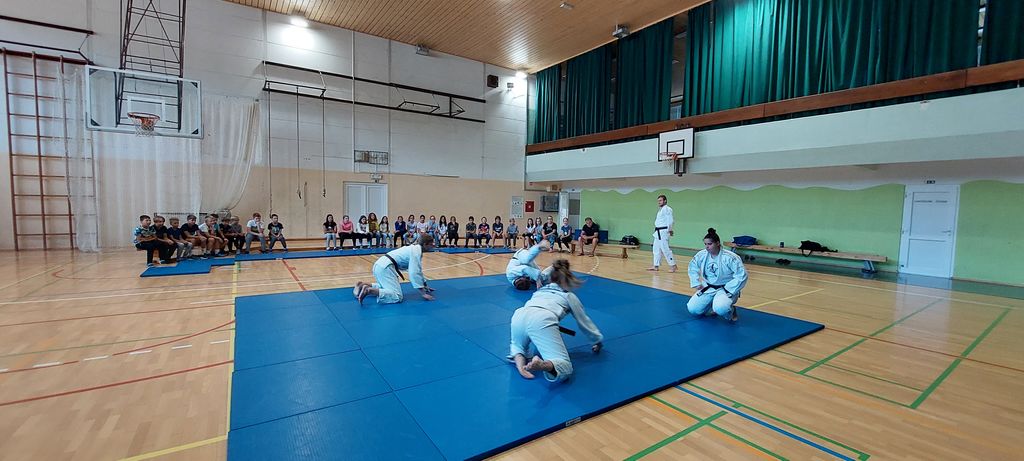 V ponedeljek, 6. 9. 2022, je v času pouka potekala predstavitev juda. Učenci in učenke od 1. do 6. razreda so pogledali, kako poteka trening juda in se poskusili v različnih padcih.