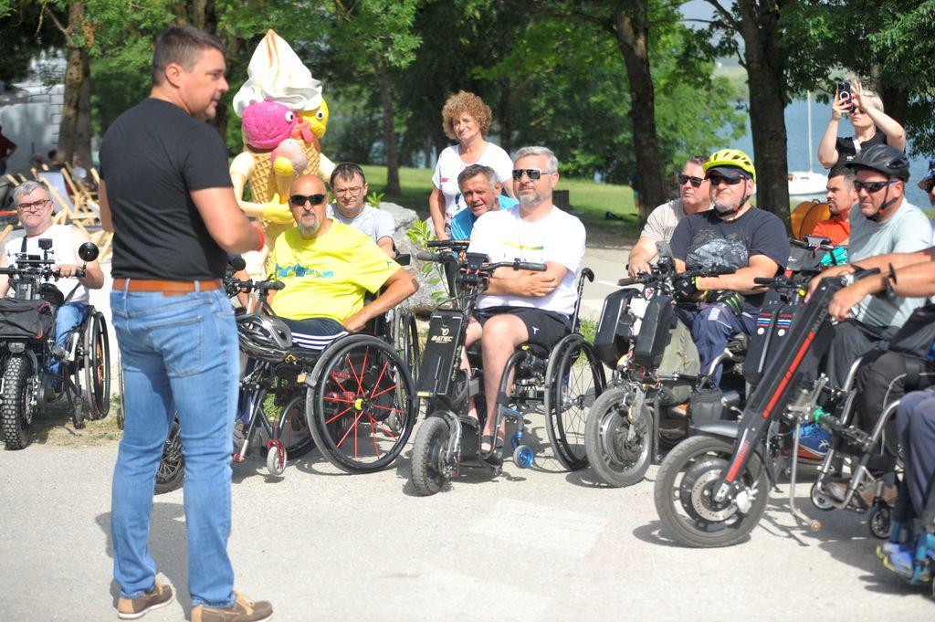 V soboto, 22. junija, smo se zbrali v Velenju v Kampu Jezero, kjer nas je pozdravil Peter Dermol, župan Mestne občine Velenja. Iz Velenja smo pot nadaljevali proti Slovenj Gradcu. Na novo odprti del kolesarske poti – imenovane Štrekna, je speljan po opuščeni trasi nekdanje železniške proge, ki je povezovala Velenje z Dravogradom. To je vsekakor ena od infrastrukturno najbolje urejenih tovrstnih kolesarskih poti v Sloveniji, ki ima izrazito slikovito panoramo, pogled na Pohorja in Uršljo goro ter doživetjem ob vožnji skozi sotesko Huda luknja. Kljub vsemu so naši spremljevalci poskrbeli za varna prečenja s cestnimi odseki, spremljevalni vozili pa sta nudili pomoč. V Slovenj Gradcu, pred atrijem graščine Rotenturn, nam je dobrodošlico izrekel dr. Peter Pungartnik, podžupan Mestne občine Slovenj Gradec. Dobili smo tudi energetsko čokoladico. Na sedežu Društva paraplegikov Koroške so udeleženci lahko (do) polnili baterije in se okrepčali. Na vrnitvi nas je malo pred Mislinjo pogostila z domačim bezgovim sokom Andreja Srt iz občine Mislinja. Ustavili smo še pred vhodom v jamo Huda luknja in zvedeli več o njej in tej soteski. Na cilju sta nas pričakali dve prijazni predstavnici Zavoda za turizem Šaleške doline, ki sta nas poučili o zgodovini nastanka jezer v Šaleški dolini, ter o številnih lepotah, ki jih nekoč to degradirano območje ponuja. Sledila je še krajša nagradna igra z lepimi nagradami. Popoldne se je nadaljevalo z druženjem ob okusni hrani in hladni pijači ter ogledom na ta dan odprte plaže Vista, Velenjskega jezera. In tisti zabave željni smo se zvečer še udeležili nastopov skupin Prljavo kazalište, Drugo dugme in Čaga boys. Prihodnje leto nas čaka pot od Mojstrane pa vse do Italije.