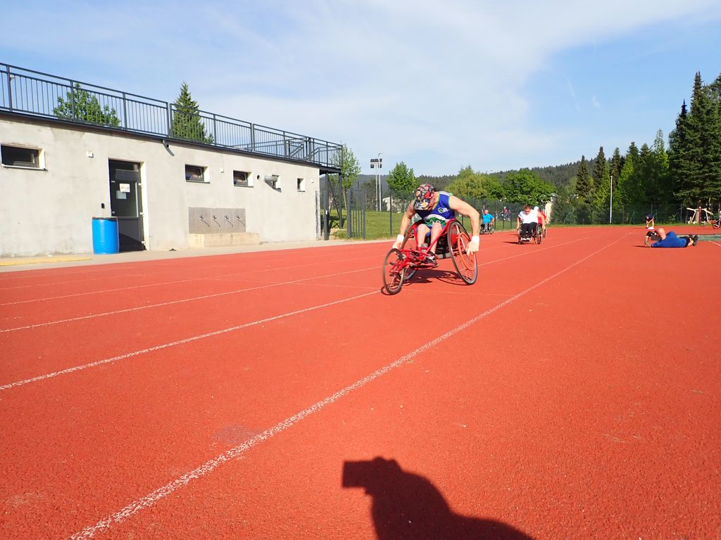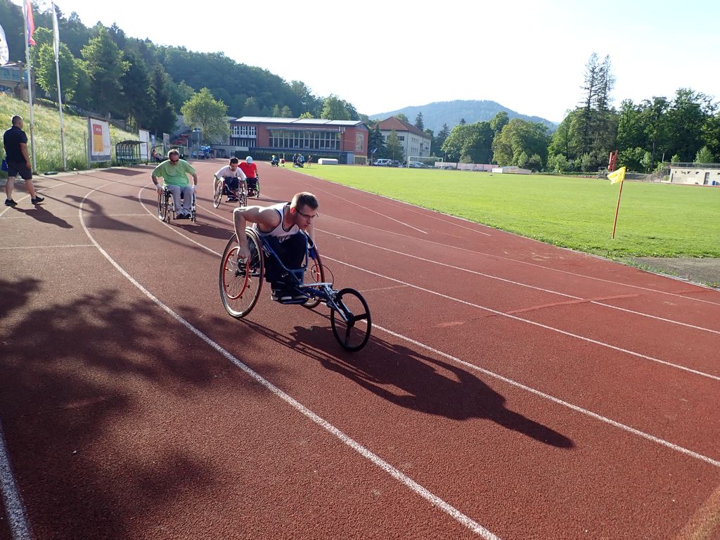 Naštejmo »stopničke« svojih atletov iz koroškega društva: Žibret Boris je bil prvi v vožnjina 100 m in na 400 m, Breg Mitja je bil prvi na 200 mna 800 m ter Rozman Stojan je bil tretji v metu kija.