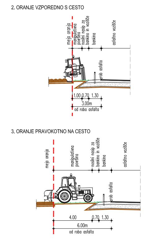 Kot pripomoček za predstavitev oranja ob cestiščih, vam predstavljamo spodnji skici: