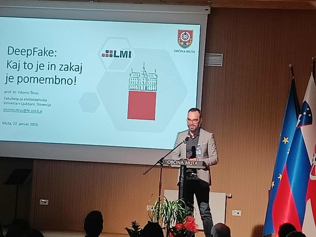 Polno dvorano vabljenih je nagovoril letšnji osrednji gost srečanja - strokovnjak in domačin dr. Vitomir Štruc. Predstavil je zanimivo in aktualno tematiko "deepfake vsebin" ter izzive, ki jih vse to prinaša sodobni družbi.