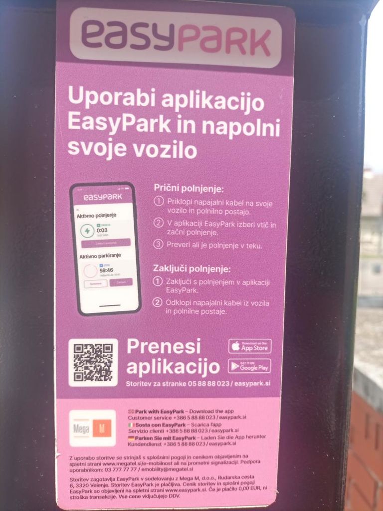 Priporačna navodila za uporabo so nameščena tudi na električni polnilnici. Tarifa polnjnja je prikazana v aplikacji in na MegaTel spletnem portalu.