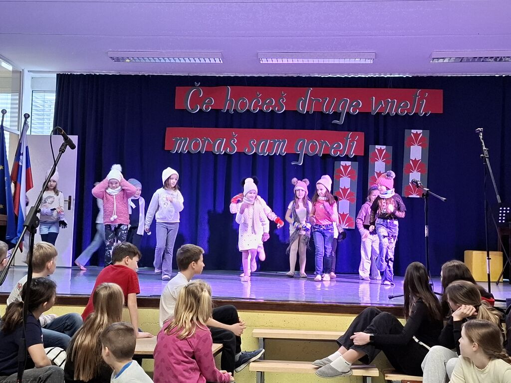 Na šoli je v petek, 20. februarja 2026, potekala prireditev pred zimskimi počitnicami, s katero smo skupaj zakorakali na zaslužene počitnice. Učenci so nas razveselili z deklamacijami, plesnimi točkami, igro, glasbo in plesom. Ob koncu je zbrane nagovorila gospa ravnateljica ter predstavila uspehe učencev v letošnjem šolskem letu. Z dosežki učenci smo dokazali, da res drži naslov pesmi »Res mi dobr gre«.