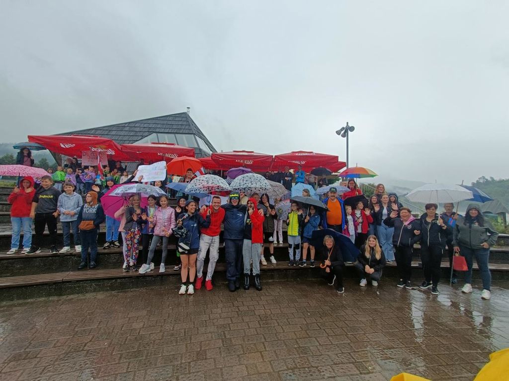 Kljub slabemu vremenu, so ekipo pričakali številni občani, županja, podžupan, člani društev, učenci OŠ Muta in otroci Vrtca Muta.