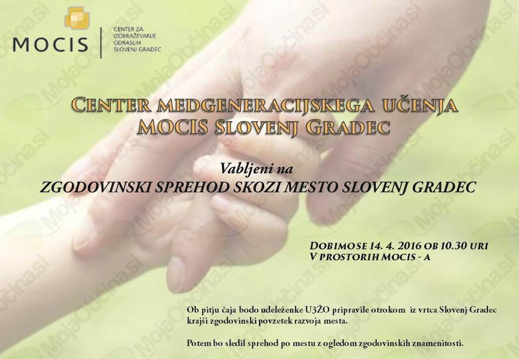 Center medgeneracijskega učenja MOCIS Slovenj Gradec vabi na ZGODOVINSKI SPREHOD SKOZI MESTO SLOVENJ GRADEC.