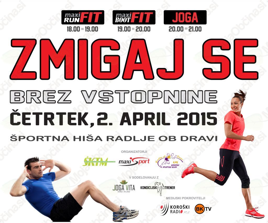 Bližajo se toplejši dnevi, ki so idealna priložnost za izvajanje različnih športnih aktivnosti v naravi. Ker se je po zaspanem zimskem času težje aktivirati, bomo v četrtek, 2. 4. 2015, za vse športa željne pripravili 3-urni brezplačni program vodene skupinske vadbe. Program, ki se bo odvijal v Športni hiši Radlje ob Dravi, se bo pričel ob 18.oo uri po naslednjem urniku: