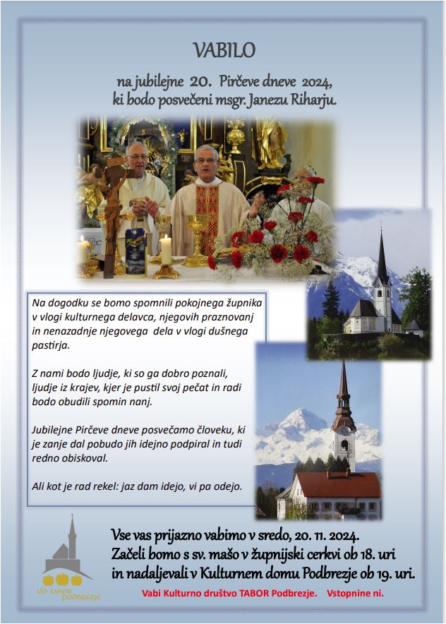 Vabljeni na prireditev, ki se bo ob 18. uri začela s sveto mašo in nadaljevala ob 19. uri v Kulturnem domu Podbrezje, v spomin pokojnega župnika msgr. Janeza Riharja.