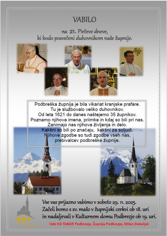 Lepo vabljeni na 21. Pirčeve dneve, v soboto 29.11. ob 19. uri v KD Podbrezje.