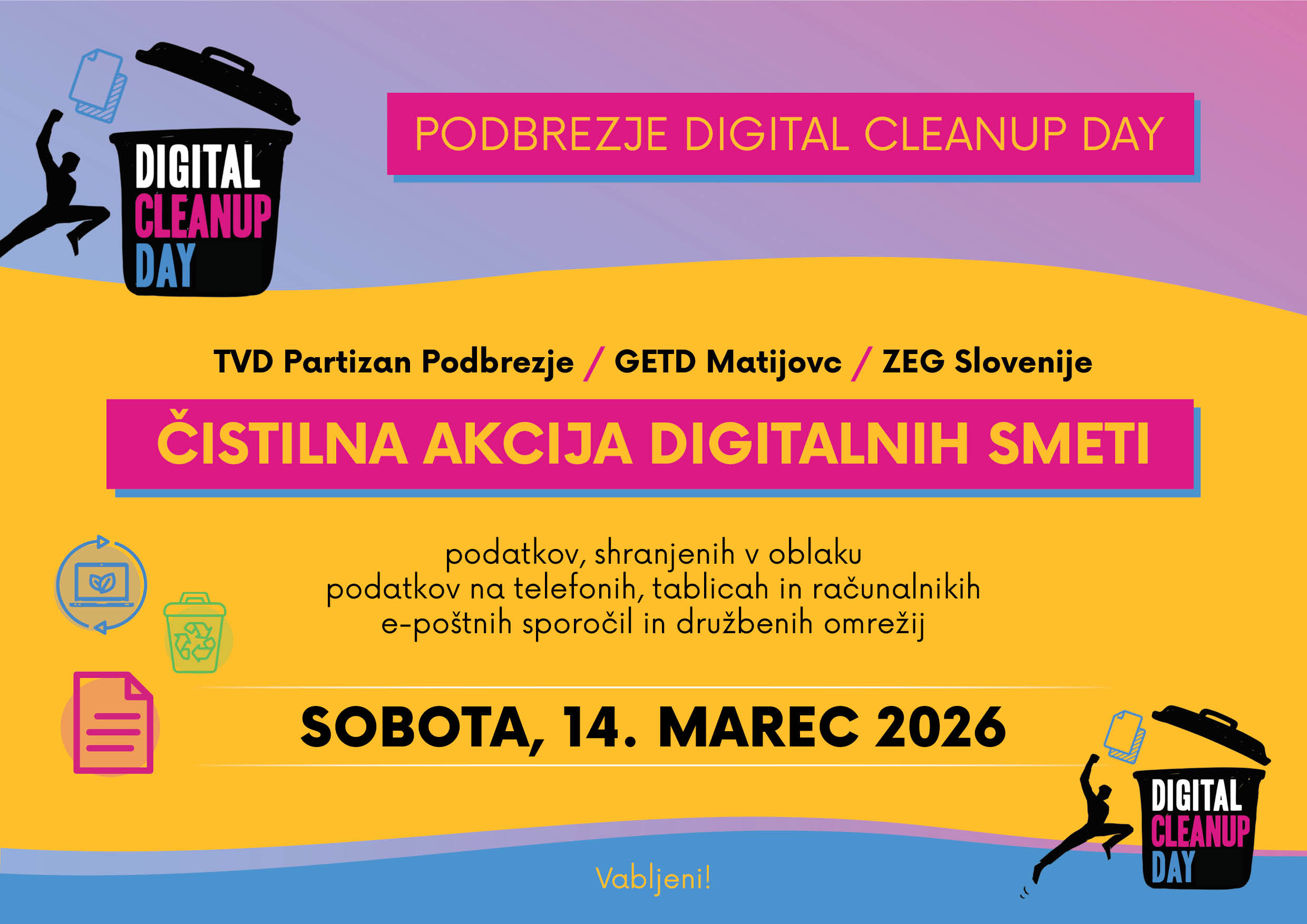 Vabljeni na čistilno akcijo digitalnih smeti, v soboto 14. marca 2026.