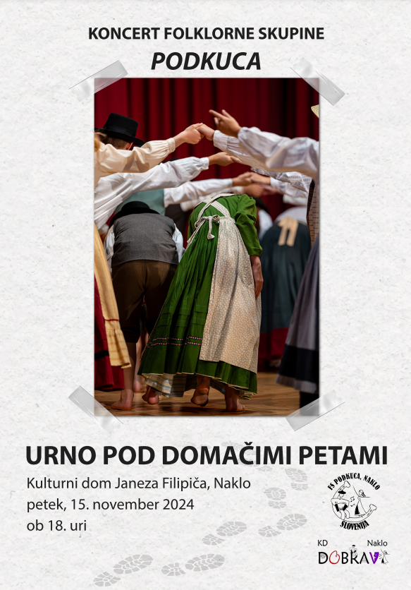 Vljudno vabljeni na koncert folklornih, pevskih in godčevskih skupin FS Podkuca, ki bo v petek, 15. 11. 2024, ob 18. 00 uri v dvorani Kulturnega doma Janeza Filipiča v Naklem.