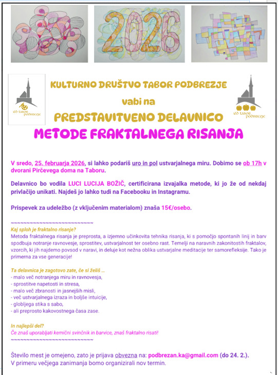 Delavnica METODE FRAKTALNEGA RISANJA, v sredo, 25.2., ob 17. uri.