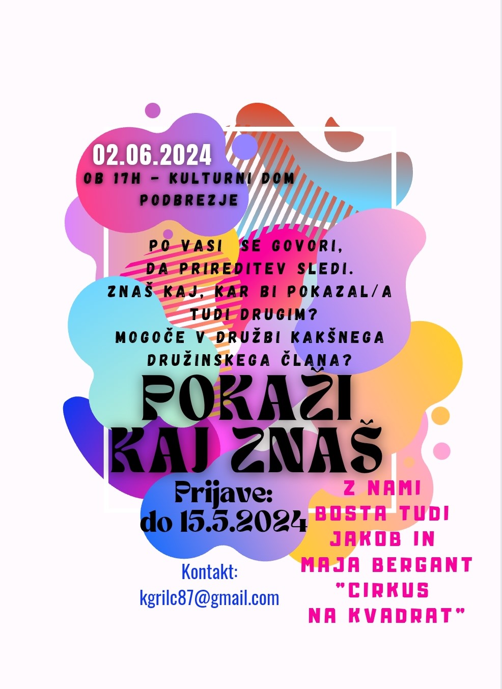 V gosteh bosta tudi 2 cirkuška artista Maja in Jakob Bergant ter plesalci PK Tržič.