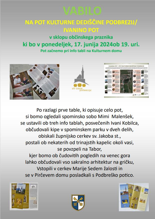 Pot kulturne dediščine/Ivanina pot od info table preko vseh osmih, do Tabora.