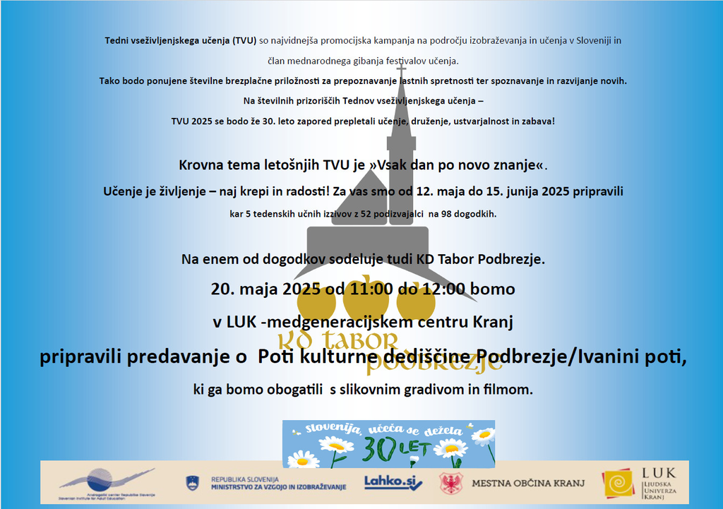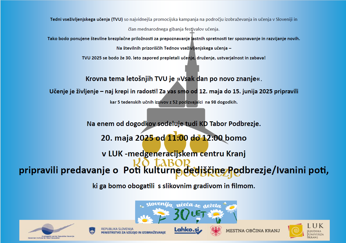 Vabljeni na predavanje v okviru TVU - Tedna vseživljenjskega učenja, ki bo v prostorih Ljudske univerze Kranj.