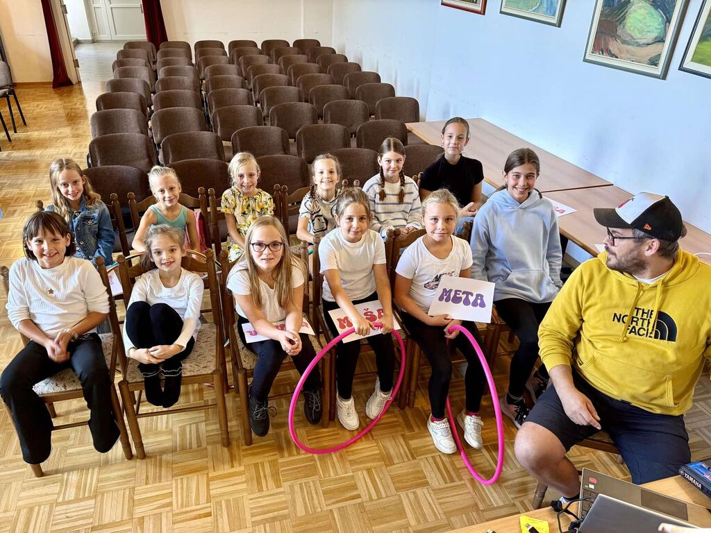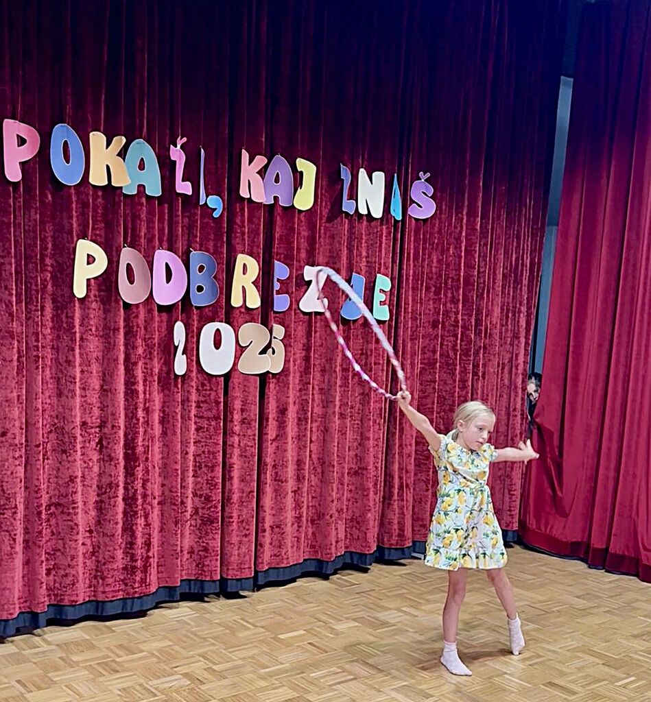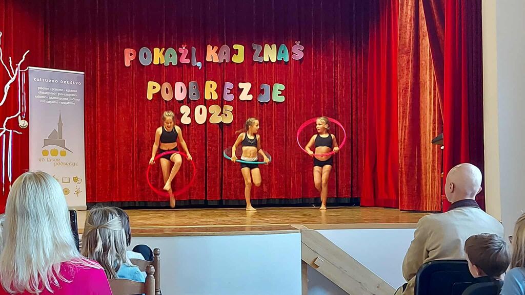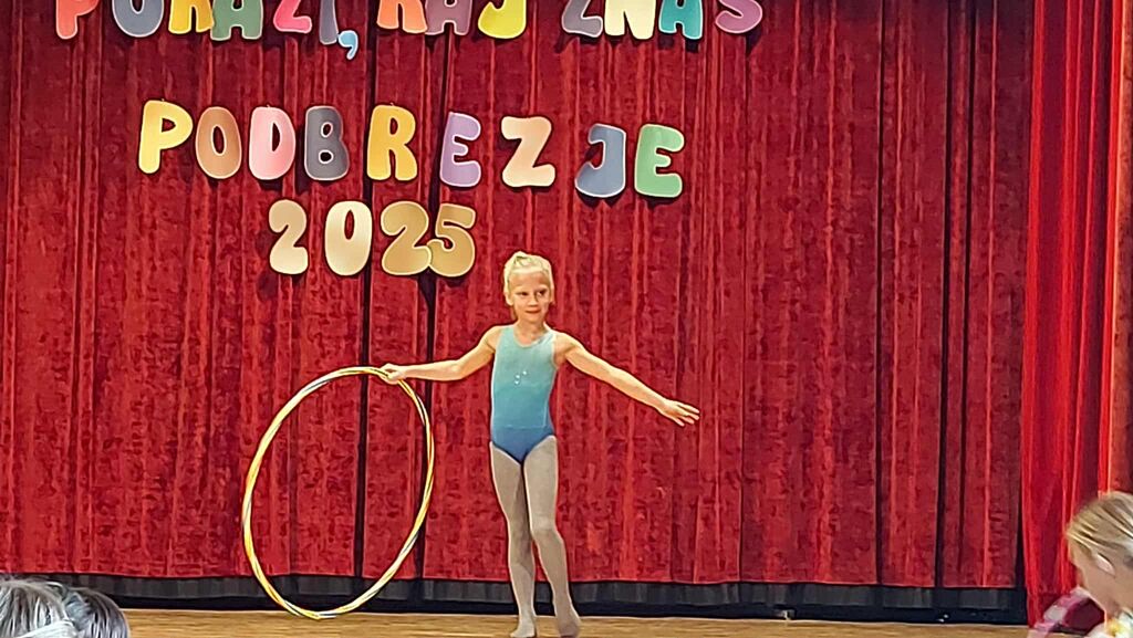 Potem so bile na vrsti naše mlade plesalke z obroči, ki so jih vrtele v vse smeri, še najbolj pa sebe. Veliko že znajo in še več obetajo. To so bile Julita Ažman s solo plesom. V troje so plesale Zara Zakrajšek, Meta Rapić in Maša Drinovec, ples z obroči pa je zaključila Sija Lackovič.