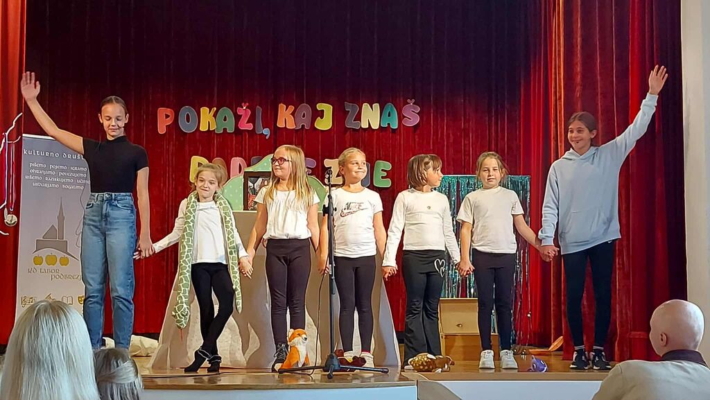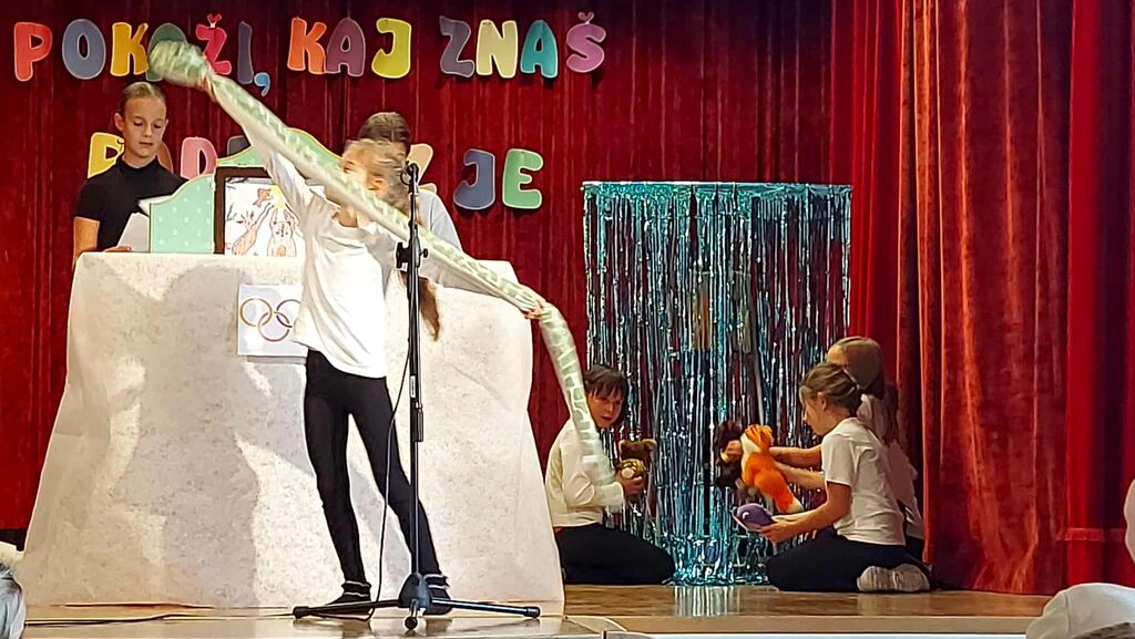 Premierni nastop so odlično izvedle in se vživele v svoje živali: Maša Drinovec v vlogi ribice, Ajda Ekar v vlogi srnice, Meta Rapić v vlogi medveda, Klara Korenčan v vlogi lisičke in Lana Blagojevič v vlogi kače. Uvodni in zaključni tekst je povzela Jerca Slapar na vezni tekst pa je pazila Ula Kokol. Prepričljivo so nam sporočile, kako pomembno je sprejemanje drugačnosti in sodelovanje za skupno dobro.