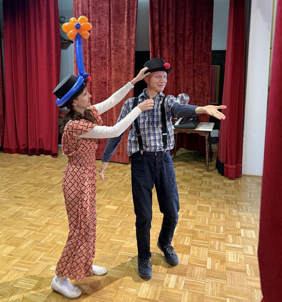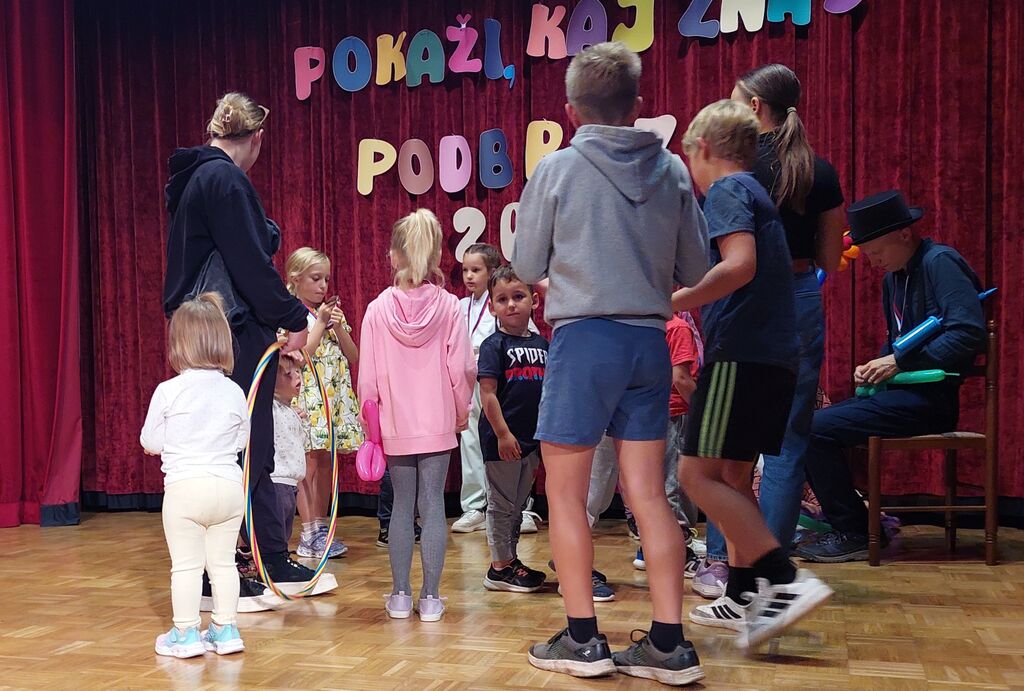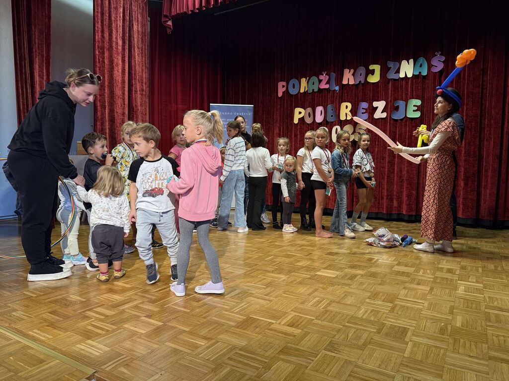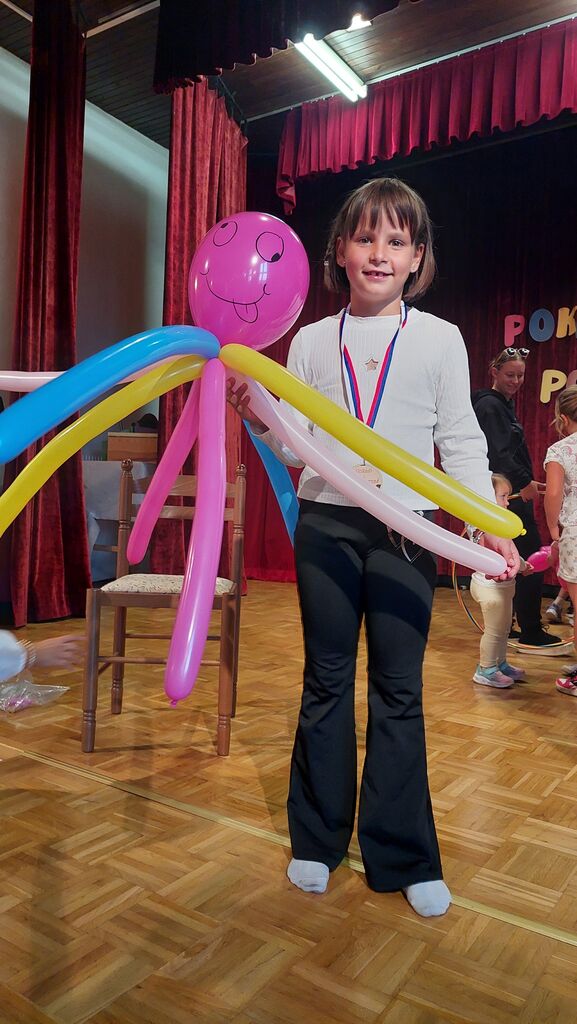 Tudi naša klovna sta imela darila naše najmlajše. Vsak si je lahko izbral barvo balona za žival , ki je z neverjetno veščino nastajala v Jakobovih rokah, Maja pa je bila spreten asistent. Kar dolga vrsta otrok je kar naenkrat nastala na odru, saj so si tako darilo želeli tudi bratci in sestrice nastopajočih in tudi tisti, ki so prišli le na ogled prireditve, ki jim bo še dolgo ostala v spominu.