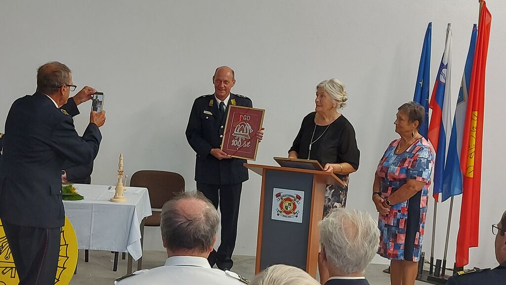 16. avgusta smo se na slavnostni akademiji lahko zahvalili in seveda čestitali predstavnikom našega prostovoljnega gasilskega društva Podbrezje (PGD Podbrezje) ob njihovi visoki obletnici, ki ga je potrjevala celo lesena konica prvega gasilskega stolpa z letnico 1925. Po himni, ki je obvezni del takega dogodka, se je predsednik društva Boštjan Aljančič s pomočjo slik na ekranu sprehodil po ključnih dogodkih zadnjih 100 let delovanja. Andraž je kot pravi virtuoz na harmoniki zaigral uvodno in zaključno skladbo. Vmes smo poslušali tudi pohvalne besede vseh gostov, ki so prišli iz sosednjih društev naše in sosednjih občin. Predstavnik rotary kluba Tržič Naklo se je spomnil prvega skupnega projekta z defibrilatorjem na gasilskem domu pred desetimi leti in jim izročil nekaj zloženk z zemljevidom in točkami kjer se le ti v občini Naklo nahajajo. Morda pridejo prav, saj oboji rešujejo življenja. Dogodku so slavnostno noto dodali še predstavniki Gasilske zveze Slovenije in sodelovali pri podelitvi najvišjih odlikovanj zaslužnim članom PGD Podbrezje, ki so bila vrhunec dogajanja.