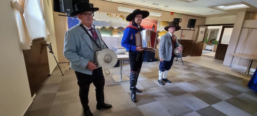 V četrtek, 14. septembra smo se ponovno srečali z našimi jubilantkami in jubilanti, ki so v zadnjih petih mesecih (od maja do septembra) praznovali 80, 90 ali več let. V tem obdobju je svoje okrogle ali visoke jubileje praznovalo kar 49 naših občank in občanov. Odzvalo se jih je 25. Posebej smo bili veseli naše najstarejše občanke, ga. Marjete Pintar iz Podbrezij, ki je poleti praznovala svoj 101 rojstni dan. Dobre volje nas je počastila s svojim obiskom. Povabili smo jih na druženje v hotel Marinšek, kjer nam vedno pripravijo prijetno okolje. Najprej je bilo na vrsti spominsko fotografiranje pred hotelom nato pa kosilo v hotelu. Dogodek so s svojim kulturnim vložkom popestrili članice in člani FS DU Naklo. Na začetku druženja sta vse prisotne nagovorila predsednik Društva upokojencev Naklo, g. Jože Kajin in župan Ivan Meglič. Ob koncu srečanja je župan še vsakemu posebej stisnil roko z najlepšimi željami za dobro zdravje. Vsem še enkrat hvala za udeležbo in vse najboljše!