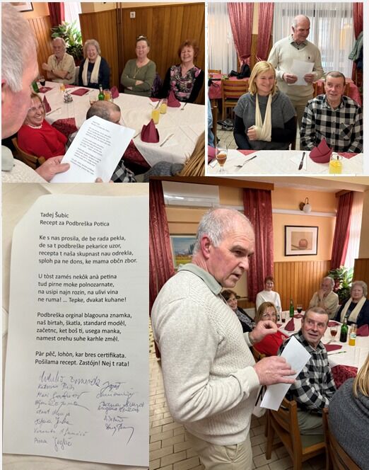 Posebne pozornosti so bile mojstrice deležne tudi s strani našega pesnika in podpredsednika Milana Debeljaka, ki je za prijateljico iz rojstnih krajev napisal recept za Podbreško potico v poljanskem narečju v obliki soneta in jo seveda tudi prebral. Na koncu pa poprosil še za podpise. Darilo ki osrečuje dvakrat!!!