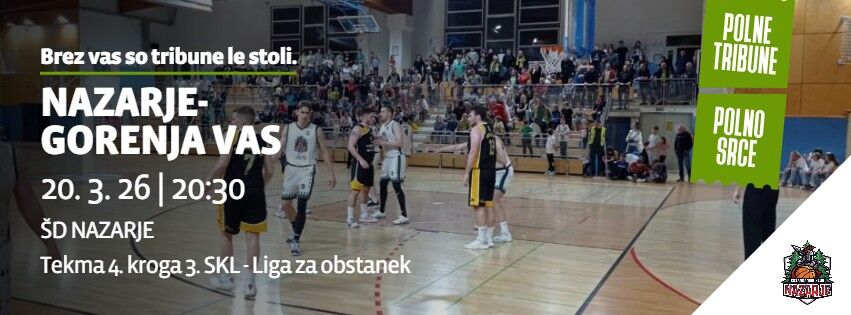 🏀 Brez vas so tribune le stoli. Pridite v ŠD NAZARJE in podprite našo ekipo Nazarje, v boju za obstanek ,proti Gorenji Vasi! Skupaj ustvarimo nepozabno vzdušje! 🙌