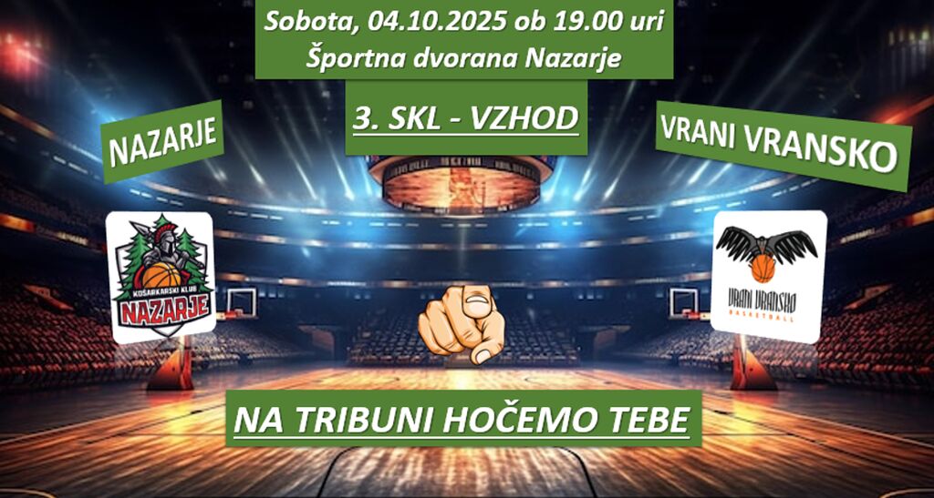 Vabljeni na ogled srečanja v Športno dvorano Nazarje. VSTOP JE PROST!