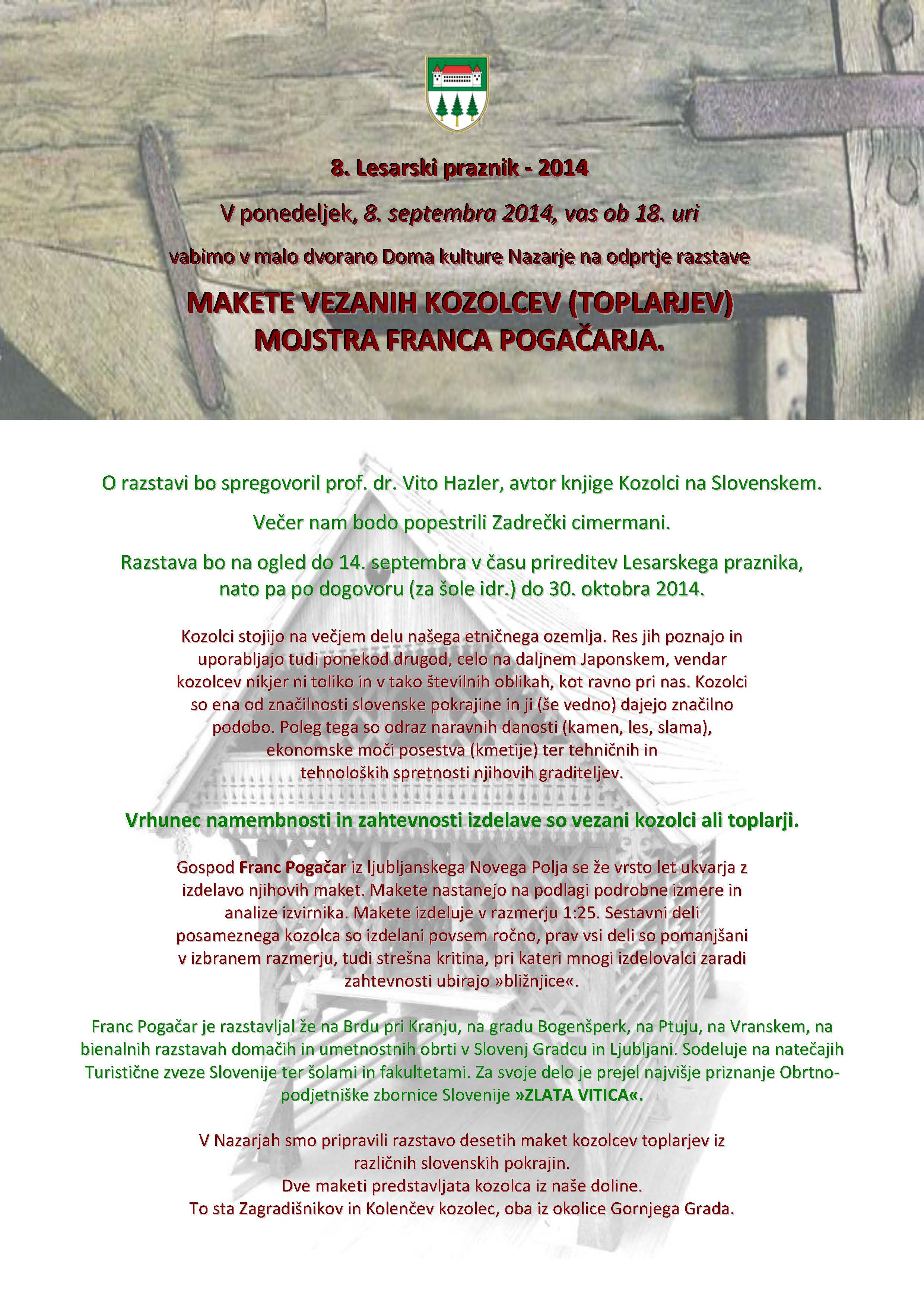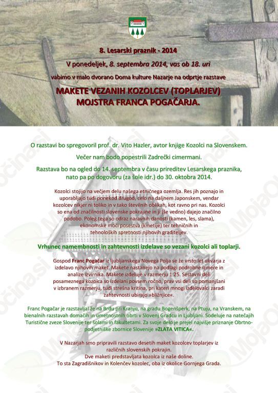 V okviru prireditev 8. Lesarskega praznika v Nazarjah smo pripravili razstavo maket kozolcev mojstra obrti Franca Pogačarja.