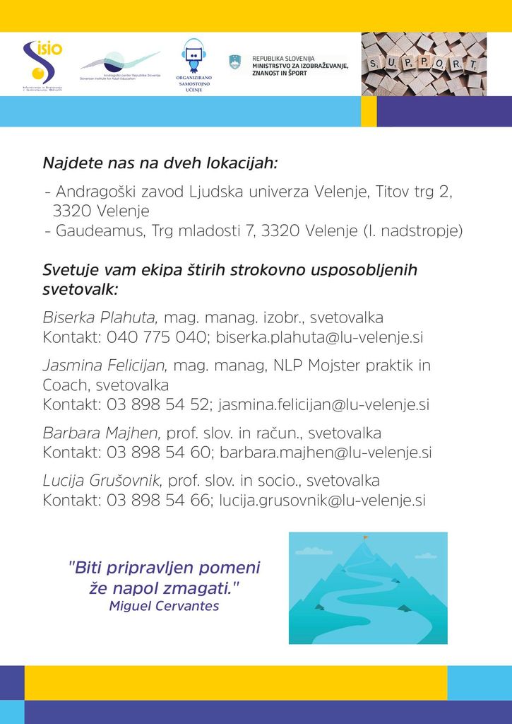 Svetujemo za izobraževanje in karierni razvoj od nedokončane OŠ do fakultete v celotni Sloveniji.