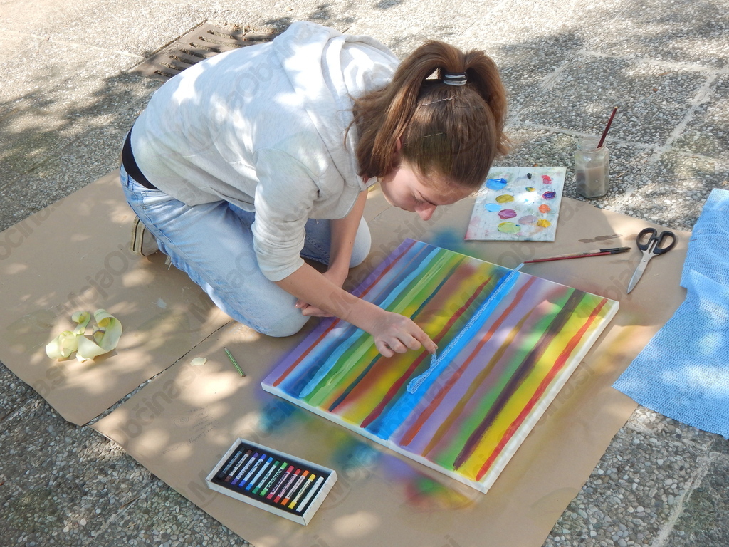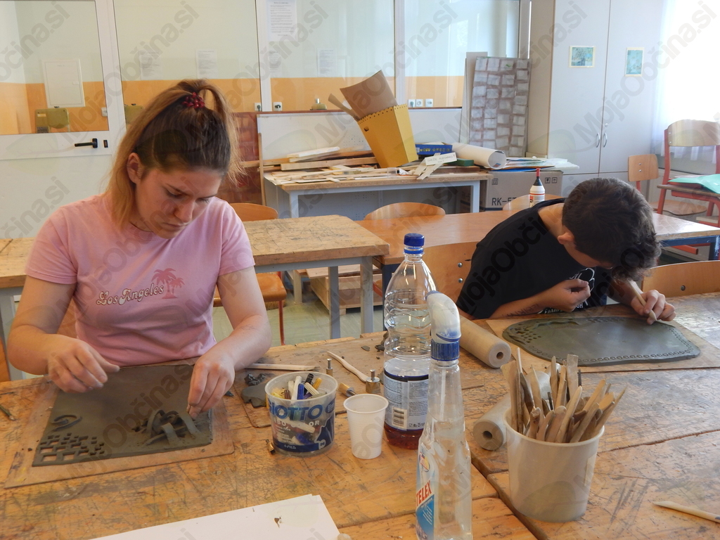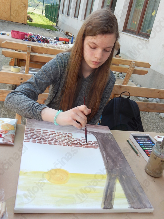 Likovna kolonija se je pričela že v dopoldanskem času in se je zaključila v popoldanskih urah. Sodelujoči učenci so pod mentorstvom akademskih umetnikov pridobivali znanja in izkušnje ter se z lastnim preizkušanjem urili na različnih področjih in likovnih tehnikah. Učence sta usmerjala akademska slikarja, Uroš Potočnik in Urška Skornšek, ki se je z veseljem odzvala povabilu na likovno kolonijo. Učenci so v avli šole ustvarjali z različnimi spreji, tempera barvami in drugimi pripomočki, v učilnici tehničnega pouka pa je potekalo kiparjenje, nastajale so prave umetniške skulpture. Likovne motive so si učenci zamislili sami in jih na svoj način in doživljanje skozi ustvarjalen dan vnesli v svoje izdelke. Skozi celoten proces so nastajali čudoviti izdelki, nekateri samostojni, nekaj je bilo pa tudi zamišljenih kot zgodba skozi več likovnih umetnin. V galeriji priloženih fotografij si lahko ogledate, kako so dela nastajala, končne izdelke pa si boste lahko ogledali na razstavi