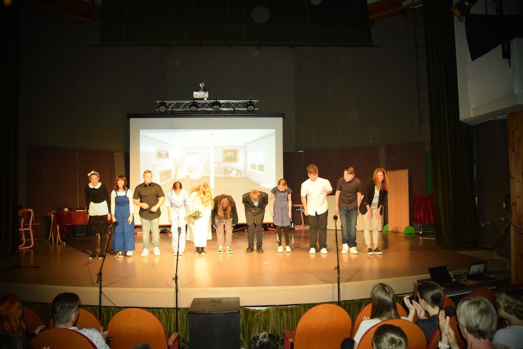 V četrtek, 25. 5. 2023 so učenci gledališkega kluba OŠ Nazarje prikazali obe gledališki igri, ki so ju ustvarjali skozi vse leto pri izbirnem predmetu gledališki klub. Predstavo so imeli dopoldne za sošolce, popoldne pa za starše.