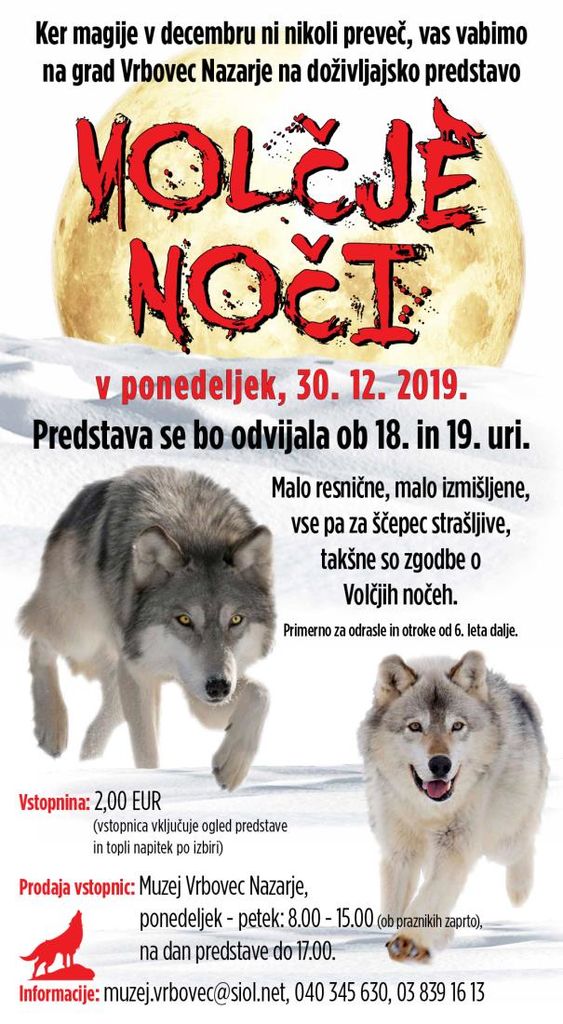 Vabljeni na strašljivo doživljajsko predstavo VOLČJE NOČI, v ponedeljek, 30. 12. 2019 ob 18. ali 19. uri.