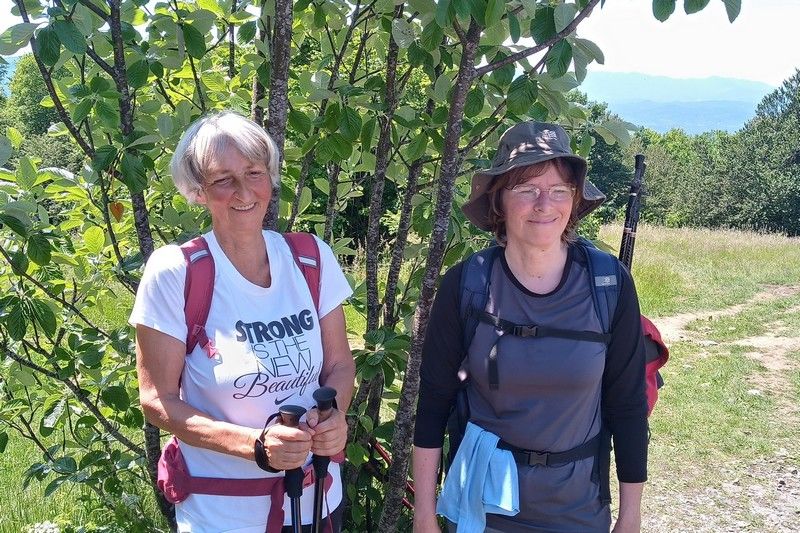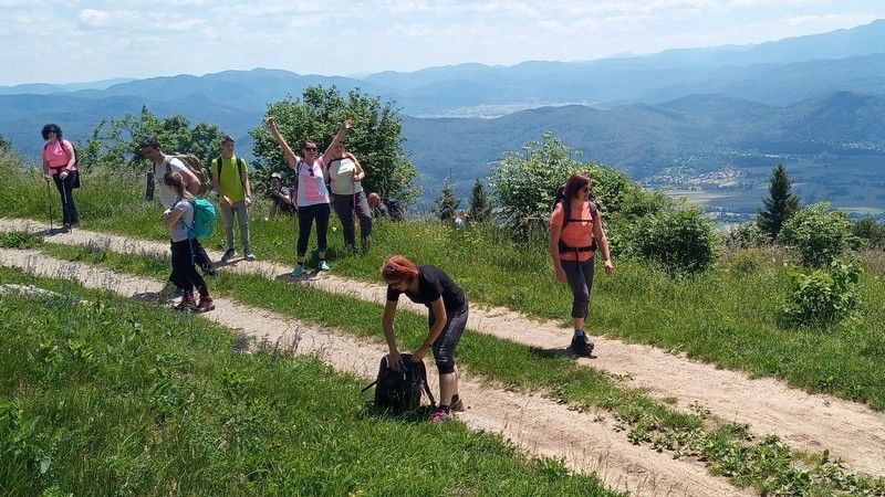 Mladi planinci so se postavili na čelo in če je bila treba, posamezne odseke prehodili dvakrat, da so utrdili gaz za odrasle. Med postanki smo spoznavali zgodovinske in naravoslovne značilnosti gore in pokrajine, nad katero se dviguje. Z vsakim višinskim metrom je bil razgled širši in boljši, saj je vršni del gore še vedno dovolj travnat. Se pa tudi proti vrhu veliko košenic počasi, a vztrajno zarašča. Pri razgledni klopi smo si za razglede in fotografirane vzeli še malo več časa, nato pa odbrzeli ali pa odsopihali, kakor kdo, na vrh gore.