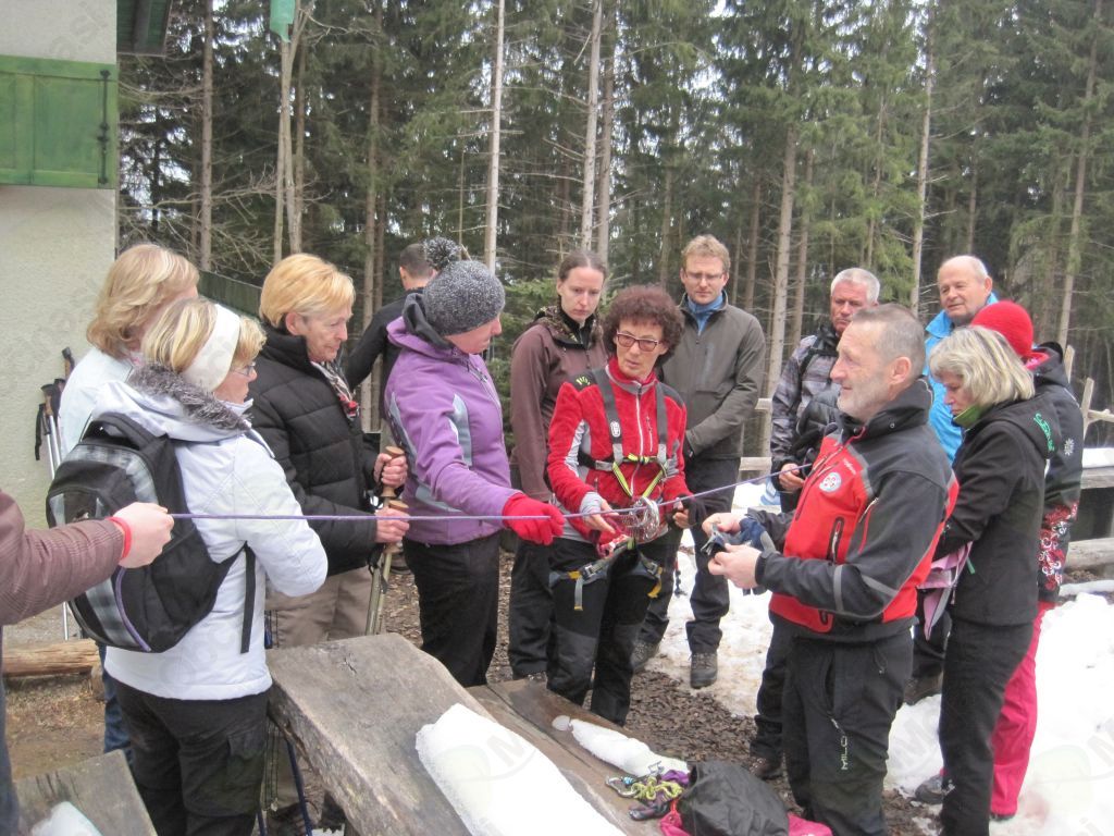V tretjem delu smo jim predstavili planinsko opremo, tudi tisto za gibanje na zelo zahtevnih zavarovanih planinskih poteh. Poudarek terenskega dela je bil na gibanju organizirane skupine planincev v snegu v zimskih razmerah. Spoznali so tudi namen in način uporabe lavinskega trojčka.