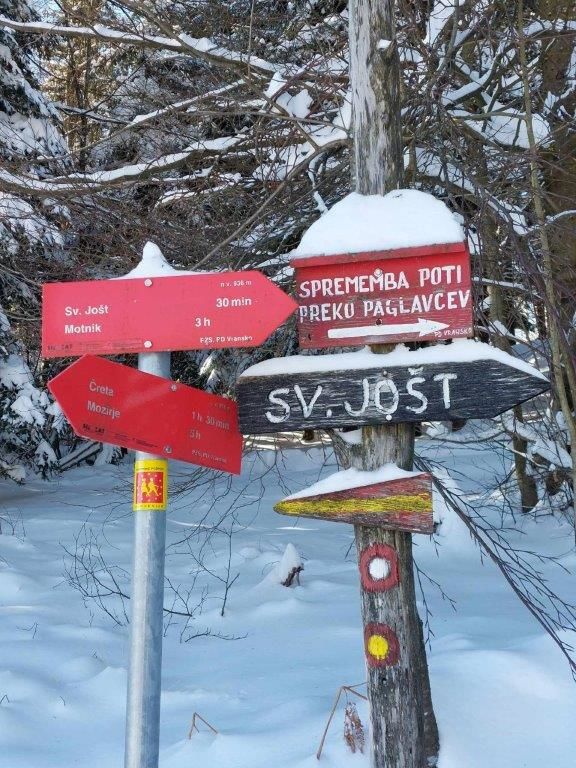 Skozi vas smo se podali proti prelazu Lipa. Od tam smo po krajšem postanku nadaljevali proti sv. Joštu. Malo se je otoplilo in na soncu je bilo prav prijetno. Nadaljevali smo proti Tolstemu vrhu. Snega je bilo cca. od 30 do 40 cm, krepko smo gazili, orali smo v nedotaknjeno belino.