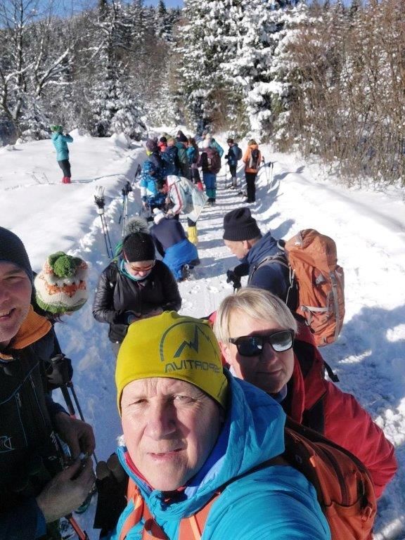 Zjutraj smo se ob 9. uri zbrali na parkirišču v Šmartnem ob Dreti. Kljub mrazu, termometri so kazali – 12 °C, nas je bilo 27.