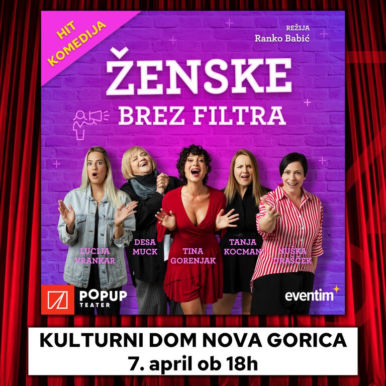 ŽENSKE BREZ FILTRA je komedija, kjer 5 žensk brez zadržkov govori o temah, ki so marsikomu blizu, a si jih redko kdo upa naglas izreči.