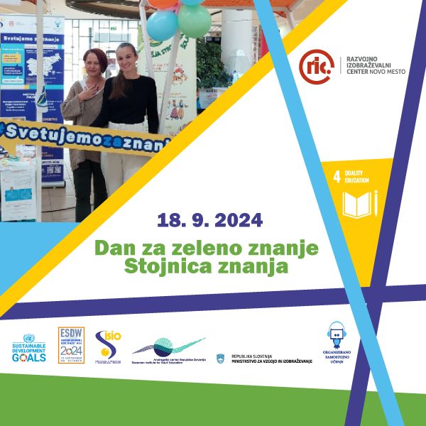 Na stojnici znanja vam bomo med drugim svetovali za izobraževanje na področju "zelenega ravnanja", ki lahko vključuje potrebe po znanju o trajnostnem razvoju, podnebni klimi, okolju prijazni in trajnostni opremi, virih in frastrukturi ter še in še. Predstavili vam bomo tudi ostalo ponudbo izobraževanj v naši regiji.