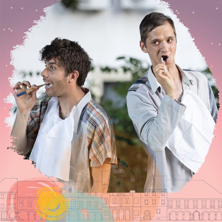 V predstavi Dobro jutro spremljamo dva prijatelja, ki si želita dan začeti s skodelico kave. A zaradi nerodnosti enega in nepotrpežljivosti drugega se že priprava mize in mletje kave zdita povsem nemogoči opravili. Jima bo uspelo premostiti medsebojne razlike in skuhati kavo ali pa se nam obeta bombastična brezkofeinska katastrofa? Dobro jutro je komična predstava o prijateljstvu z visoko hitrostjo in malo besedami. Vsebuje elemente fizične komike in cirkusa. Glede na to, da od igralcev zahteva izredno telesno pripravljenost, priporočamo, da predstavo zaužijete, preden ostarita.