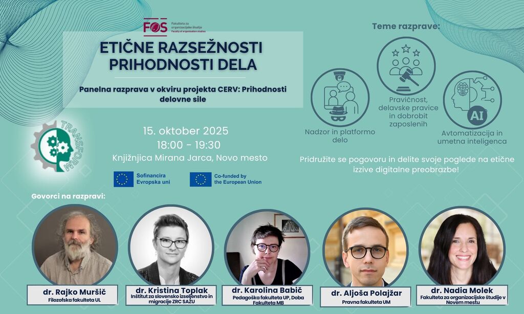 Fakulteta za organizacijske študije v Novem mestu (FOŠ) vas vabi na panelno razpravo Etične razsežnosti prihodnosti dela.
