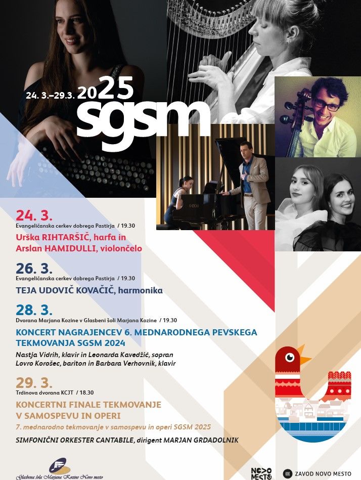 Med 24. in 29. marcem v Novem mestu poteka 10. mednarodni glasbeni festival Sem glasba, sem mesto. Začnemo v ponedeljek, 24. marca, ob 19.30 s koncertom URŠKE RIHTARŠIČ na harfi in ARSLANA HAMIDULLINA na violončelu.