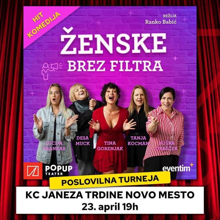 ŽENSKE BREZ FILTRA je komedija, kjer 5 žensk brez zadržkov govori o temah, ki so marsikomu blizu, a si jih redko kdo upa naglas izreči.