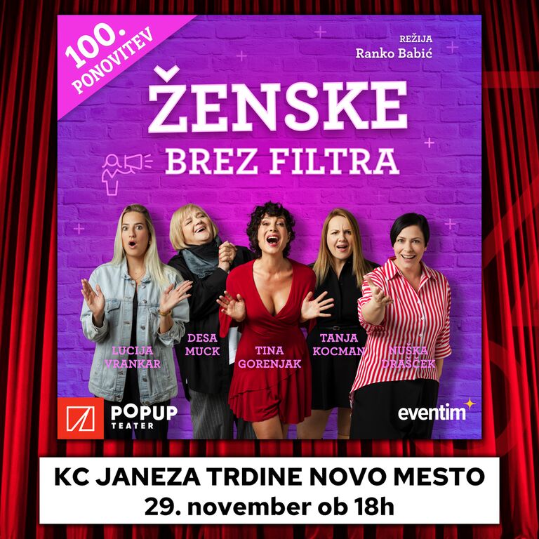 ŽENSKE BREZ FILTRA je komedija, kjer 5 žensk brez zadržkov govori o temah, ki so marsikomu blizu, a si jih redko kdo upa naglas izreči.