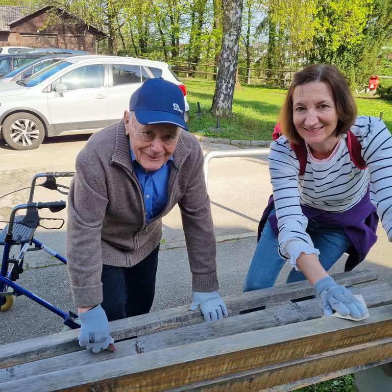 Devetinosemdesetletni Jože, stanovalec iz DSO NM: »Vse življenje sem bil vajen delati, sem izučen čevljar, delal sem tudi kot mornar. Zdaj sem 2 leti v DSO in sem rade volje prišel pomagat v današnjo akcijo. Res delam lažja dela, imam težave z zdravjem, sem pa vesel družbe mladih. Si želim še več takšnih akcij, da bi se družili z mladimi obiskovalci.«