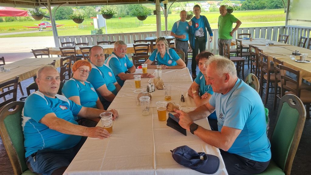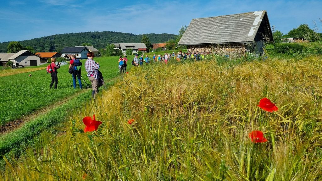 Zbrali smo se zjutraj, na letališču Prečna, se z avtobusi odpeljali do vkopa Karteljevo in se od tam podali na pohod, po delu Rudolfove poti nazaj proti letališču. Približno trinajst kilometrov dolg pohod je mineval v prijetnem klepetu, druženju. Ni težko hoditi, ko hodiš v dobri družbi. Nekaj kratkih postankov je bilo vseeno potrebnih, za malico in da se odžejamo, kajti sonce nas je grelo. Še kako prav je prišla senca dreves po gozdnih poteh. Del poti nas je spremljal potok Bezgavec, račke in mlinček. Voda v bližini hladi in s svojim šumenjem pomirja. Vseskozi pa lepa narava, svež zrak, res nekaj najlepšega za srce, dušo in telo.