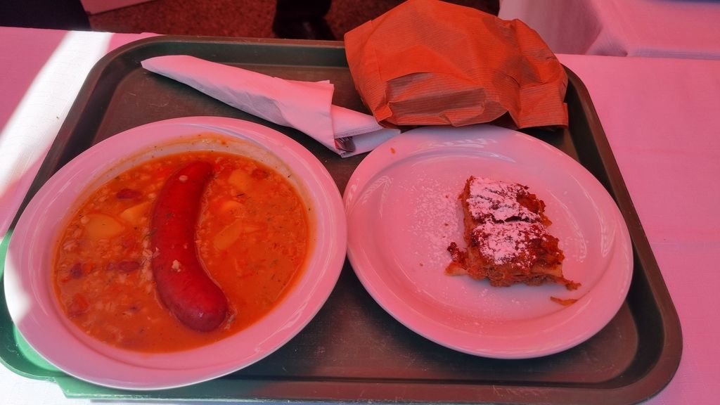 Po slovesnosti je sledilo kosilo, pravo planinsko, ki si ga verjetno veliko nas privošči v koči na gori, ričet s klobaso in jabolčni zavitek. K odlični hrani se je prav lepo podala domača glasba dveh glasbenikov, ki sta nam pričarala čudovit ambient in vzdušje, tudi za ples.