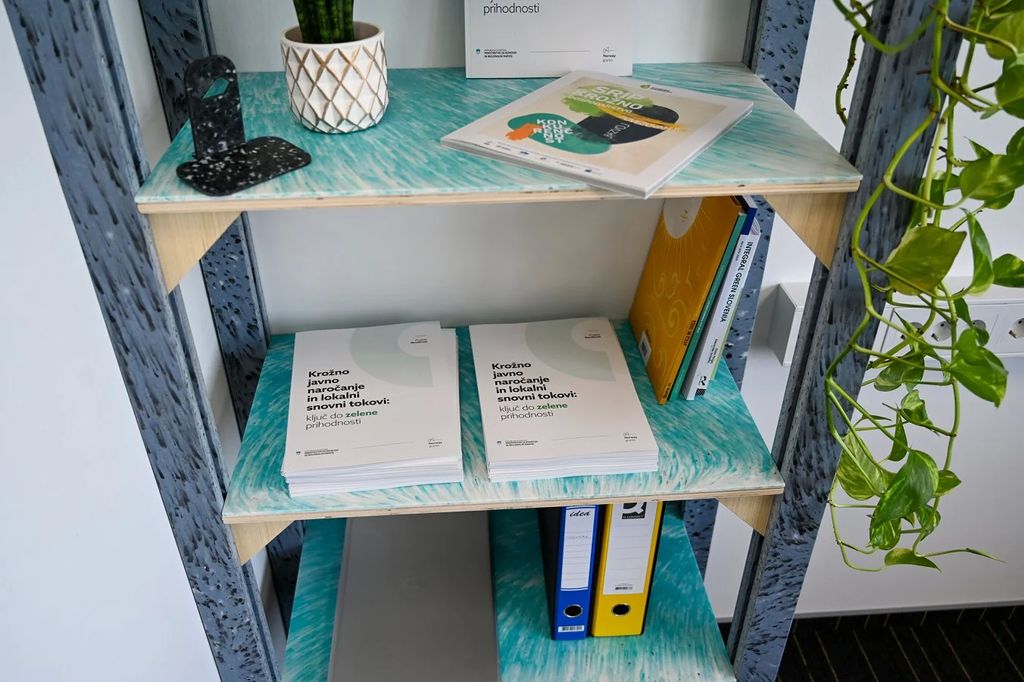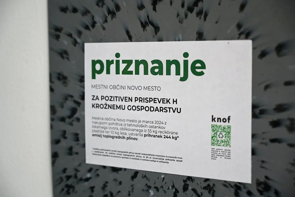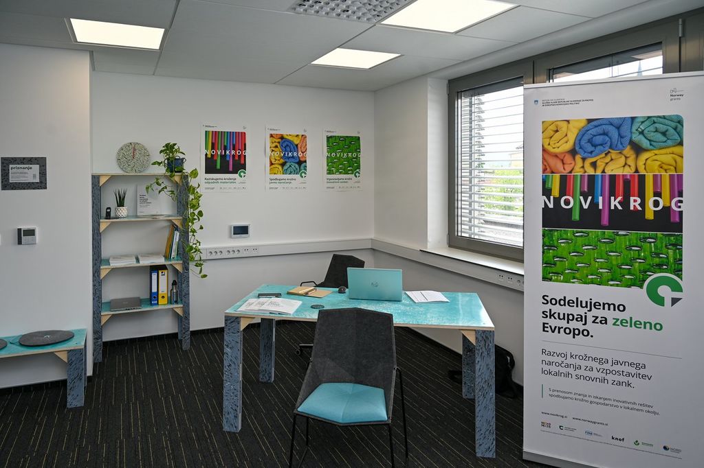 Krožni inovativni center je opremljen s stoli in pohištvom, za katerega smo na občini ob objavi naročila dala pogoj, da mora biti v najmanj 50 % narejeno iz recikliranih materialov oziroma materialov iz ponovne uporabe. »Preko javnih naročil v Sloveniji letno naročimo pohištva v vrednosti 15 milijonov evrov. Če bi vsaj 7 % pohištva naročili iz ponovne uporabe, bi to pomenilo, da rešimo okoli 4.250 kosov pohištva iz sežigalnic in prihranimo najmanj 200.000 kg CO2 na leto ter ustvarimo nova zelena delovna mesta v lokalnem okolju,« je na novinarski konferenci dejala Polona Hrovat Mavsar, vodja projektov na Zavodu Knof.