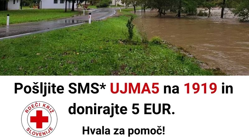 Z donacijo preko SMS-a pošljite sporočilo s ključno besedo UJMA5 oziroma UJMA10 na številko 1919 (za uporabnike Telekoma, A1, T-2 in Telemacha). S tem boste prispevali 5 oz. 10 evrov za pomoč prizadetim. Poleg tega lahko donirate tudi na naš TRR: Rdeči križ Slovenije, Mirje 19, 1000 Ljubljana, SI56 0310 0123 4567 891 (odprt pri SKB Banka d. d.), sklic 00 96875, namen: Ujma 2023, BIC banke: SKBASI2X, koda namena: CHAR.