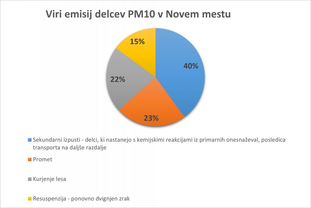 Letna statistika meritev v Novem mestu, ki je vezana samo na referenčno merilno mesto na Žibertovem hribu, je pokazala zabeleženih 10 preseganj dnevnih mejnih vrednosti delcev PM10 v letu 2019. Na podlagi meritev, pri čemer so bile upoštevane samo celoletne meritve z referenčnega merilnega mesta Žibertov hrib, smo v letu 2020 prejeli obvestilo o prenehanju uvrščanja Mestne občine Novo mesto med območja s slabo kakovostjo zraka. Stremimo k temu, da bi v prihodnje Agencija Republike Slovenije za okolje okrepila svoje meritve v Mestni občini Novo mesto z vsaj eno dodatno referenčno postajo za merjenje kakovosti zraka, ki bo boljše odražala kakovost zraka za celotno urbano področje Novega mesta.